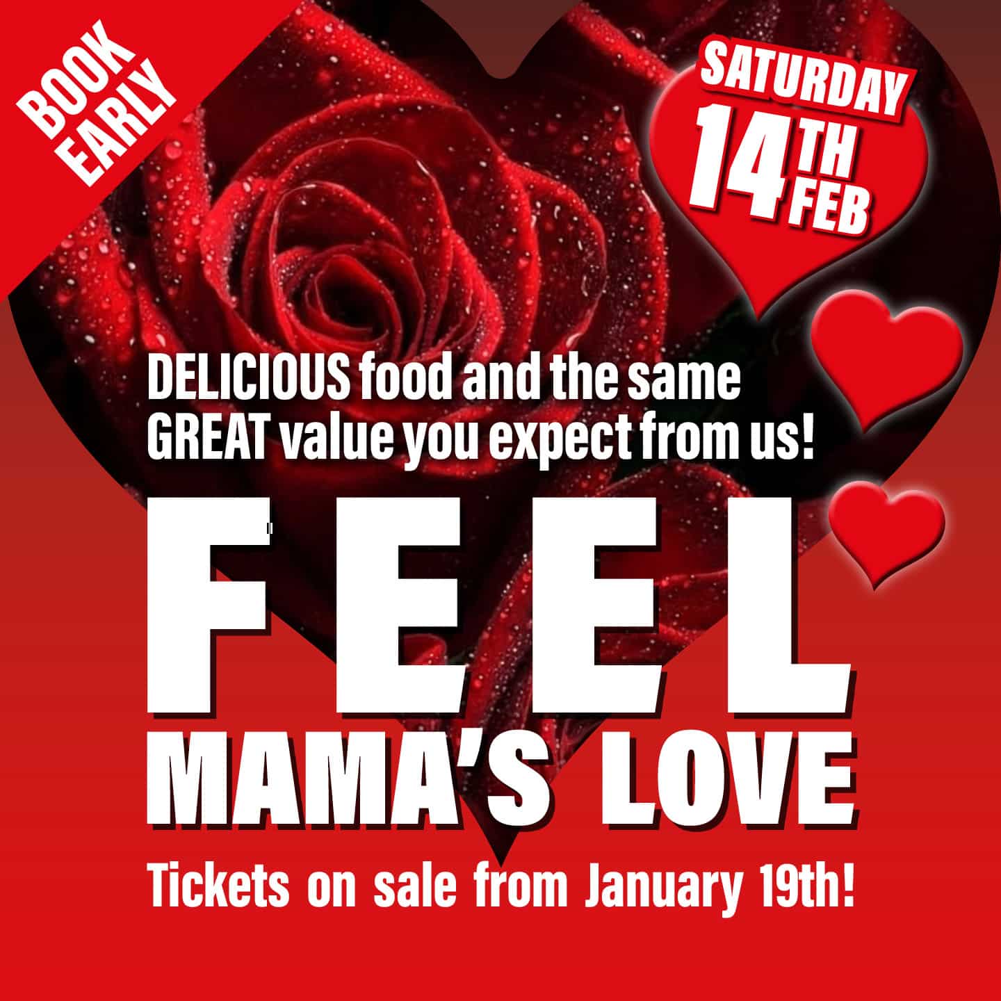 Top Tip: We have a great option for you to buy your date a rose and another box you can tick to pre-order prosecco or Mama’s signature Valentine cocktail at a special price!